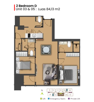 Your Private & Serene Sanctuary. Aerium Residence mempersembahkan apartemen keluarga dalam lingkungan yang aman dan sehat. Saat ini tersedia unit di South Tower tipe 2 BR dan 3 BR.